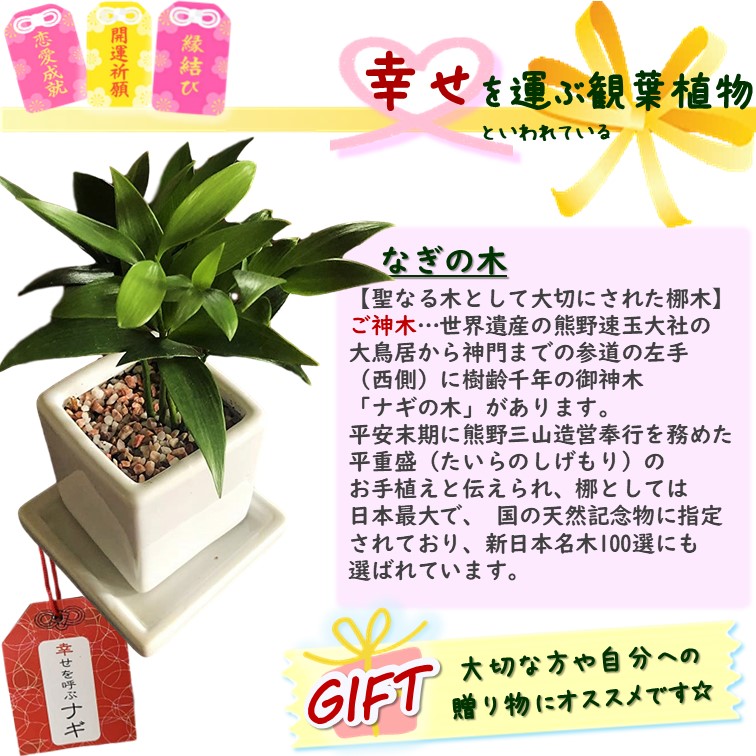 観葉植物 なぎの木 白角 陶器鉢 1個 梛の木 ご神木 ミニ 日本古来の木 良縁 夫婦円満 神の宿る木 祝い ギフト デスク ミニ 室内