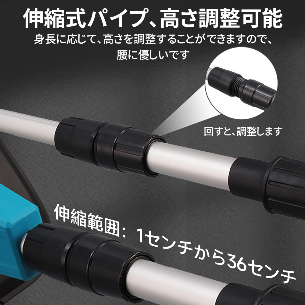 使いやすさ&収納の利便性:機体は伸縮・折りたたみ式デザインを採用。収納時にスペースを節約でき、運搬も便利です。全体が軽量設計で、女性ユーザーも楽に操作できます。