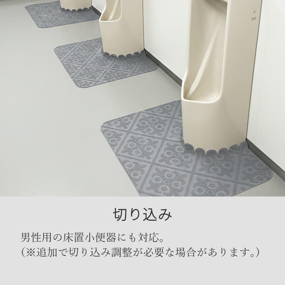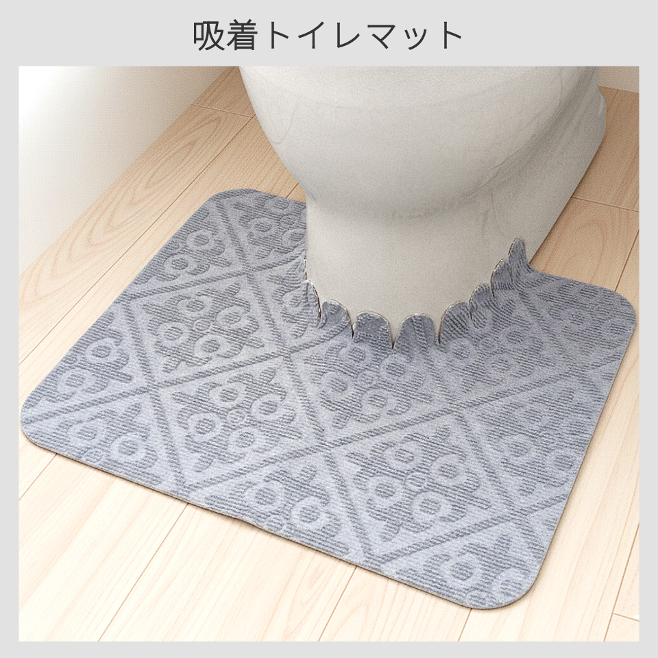 トイレマット 洗える 吸着 幅55cm 55×44cm トイレ 滑り止め マット 小便器対応 男性用 薄い 薄型 エンボス 柄付き ダマスク柄 メール便配送 bakugai202602