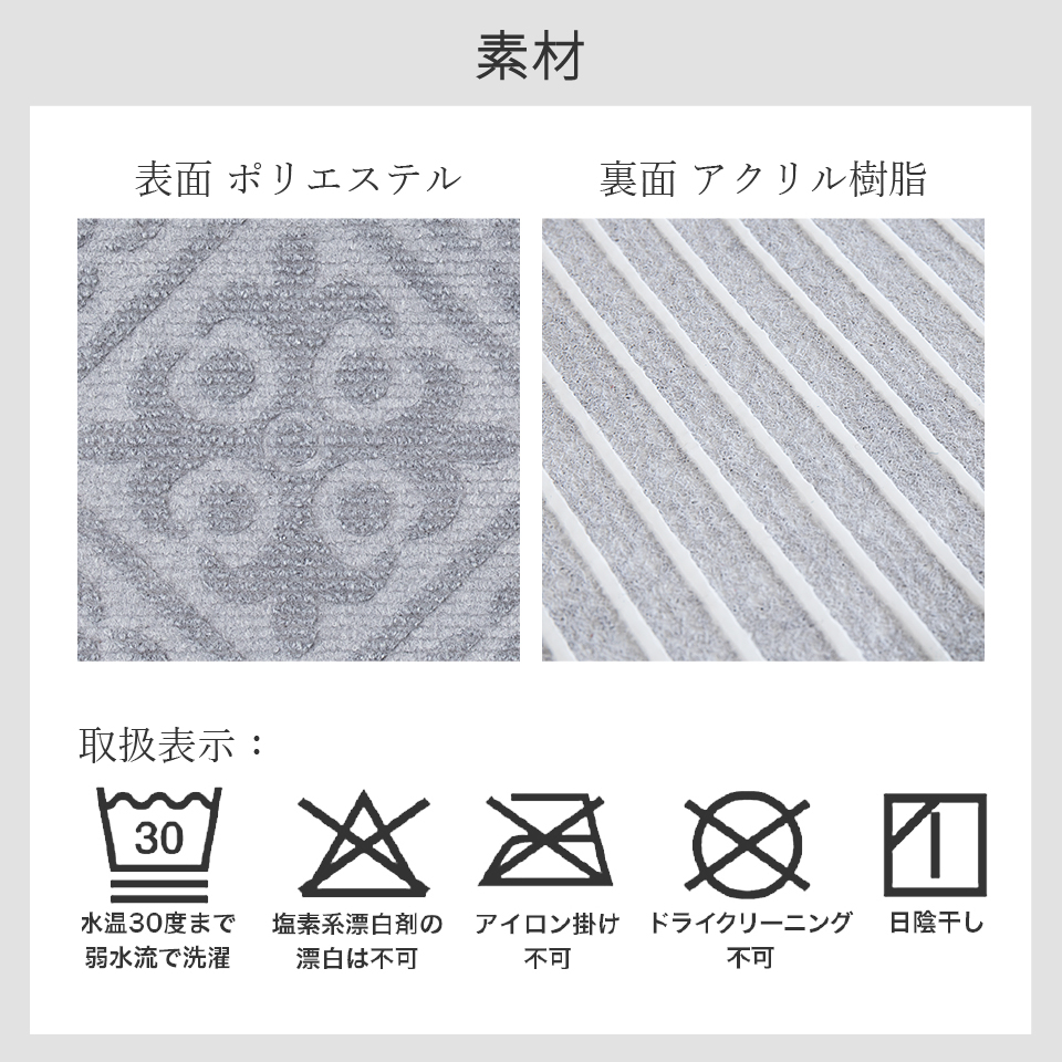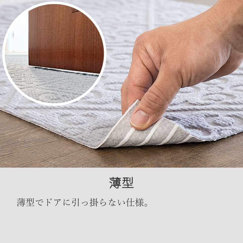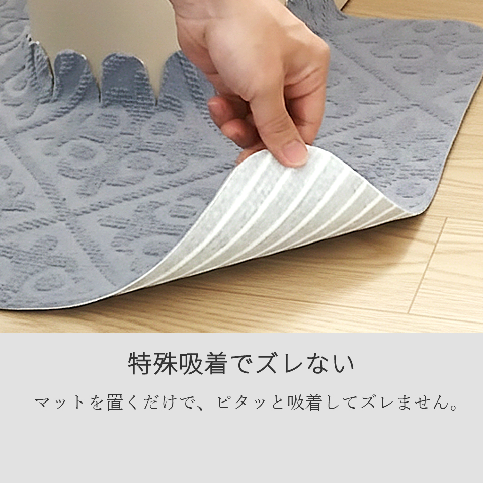 裏面は特殊吸着加工で床にピタッと吸着。簡単に外せて跡も残りません。