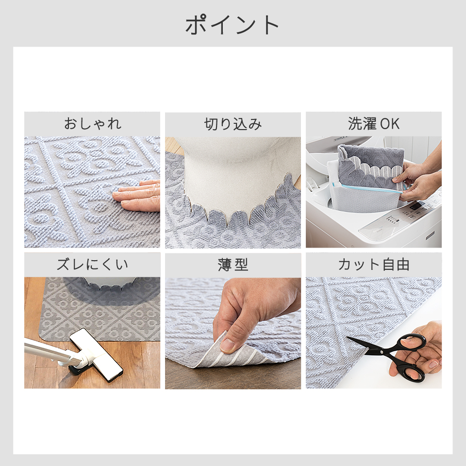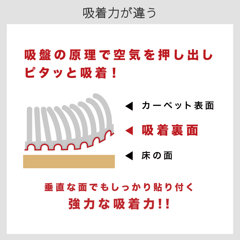 吸盤の様にピッタリ貼り付き、掃除機で吸い込んでも、つまづきにくく安全です。