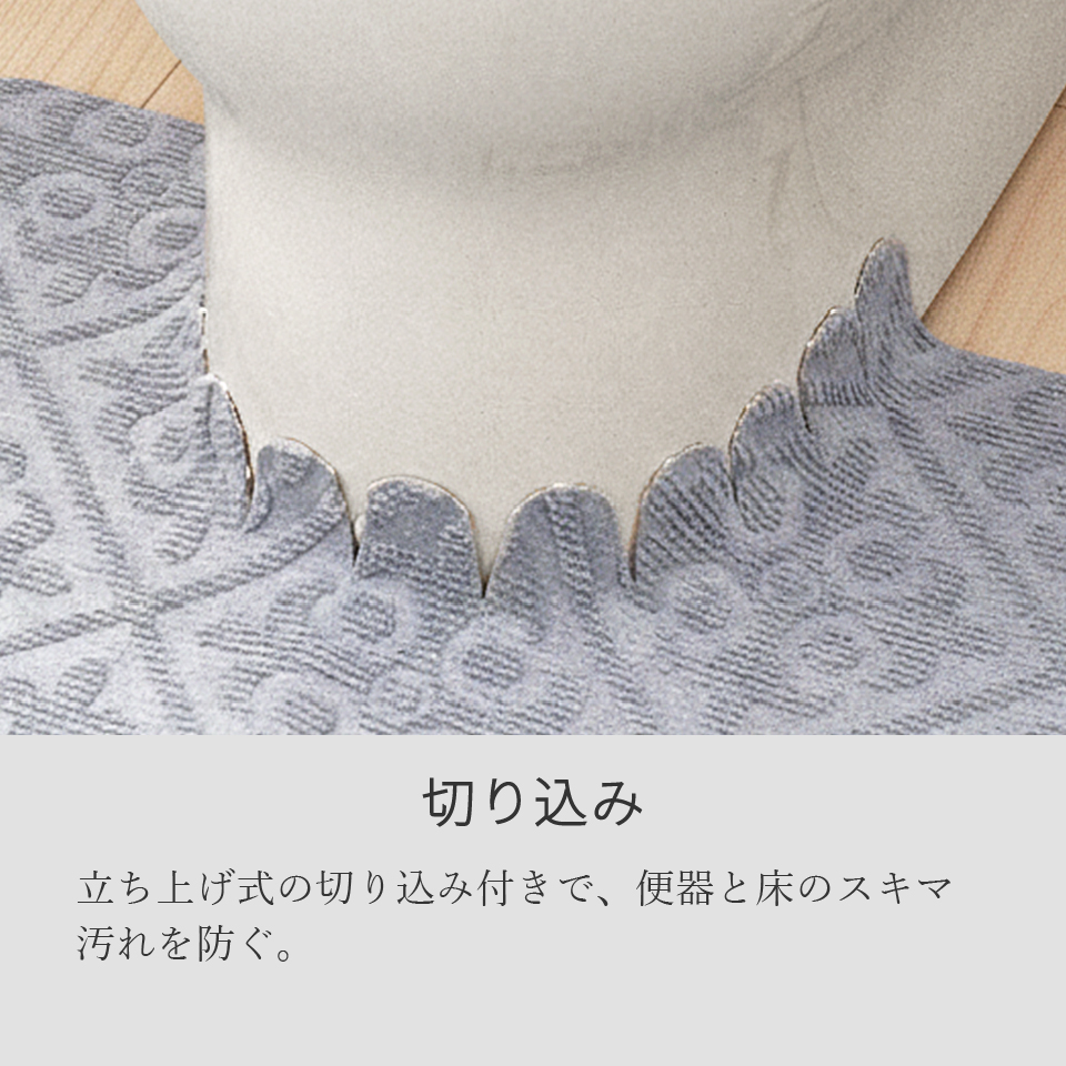 立ち上げ式の切り込みで、便器と床のスキマ汚れを防ぐ。