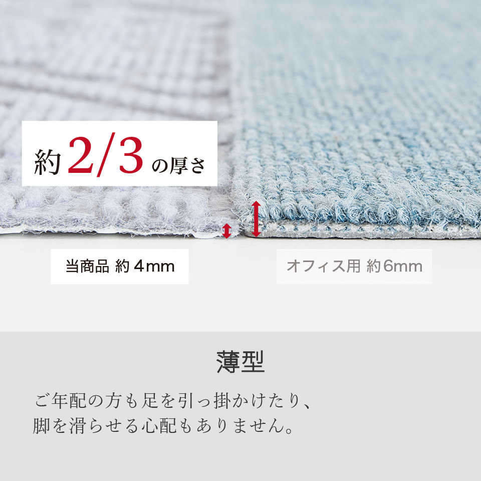 年配の方も足を引っ掛けたり、脚を滑らせる心配もありません。