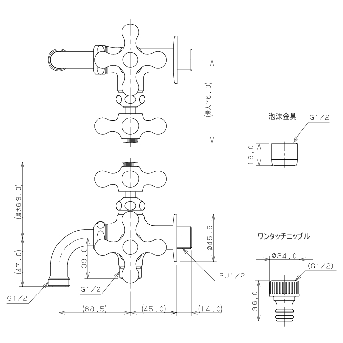 水栓本体(泡沫アダプター、ワンタッチニップル付属)