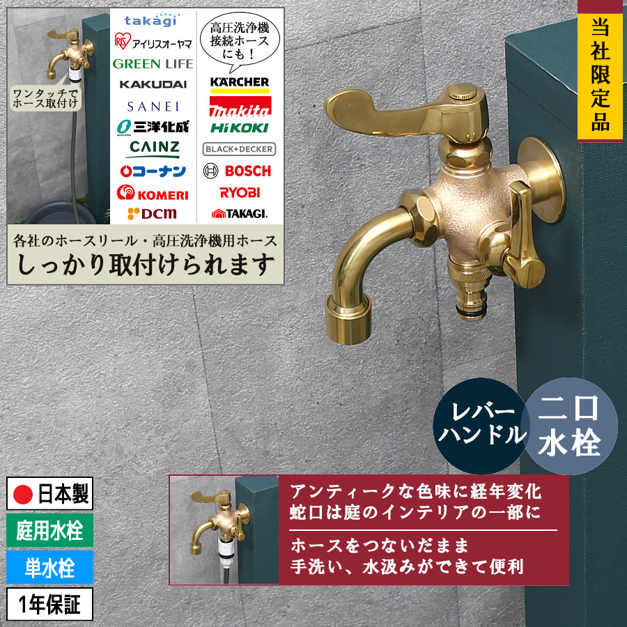 二口蛇口・万能水栓(レトロ/鋳肌)