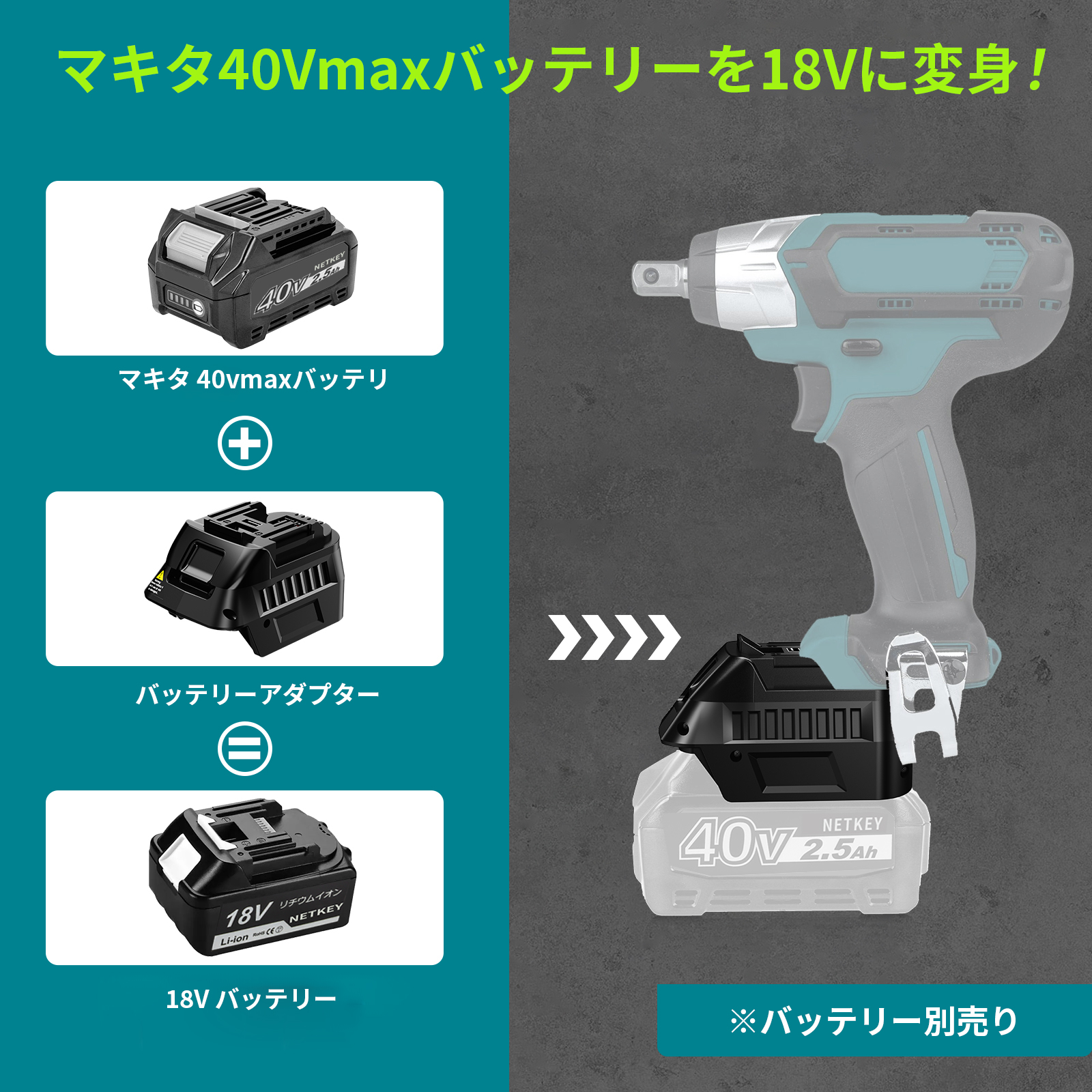 マキタ40Vmaxバッテリーが18V プロバッテリーに変身!幅広い応用性、1つのバッテリーを異なる機種で使える。