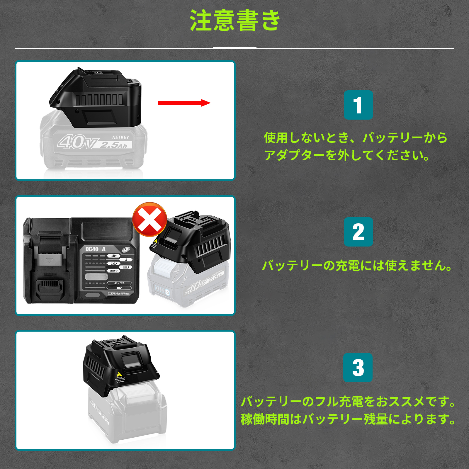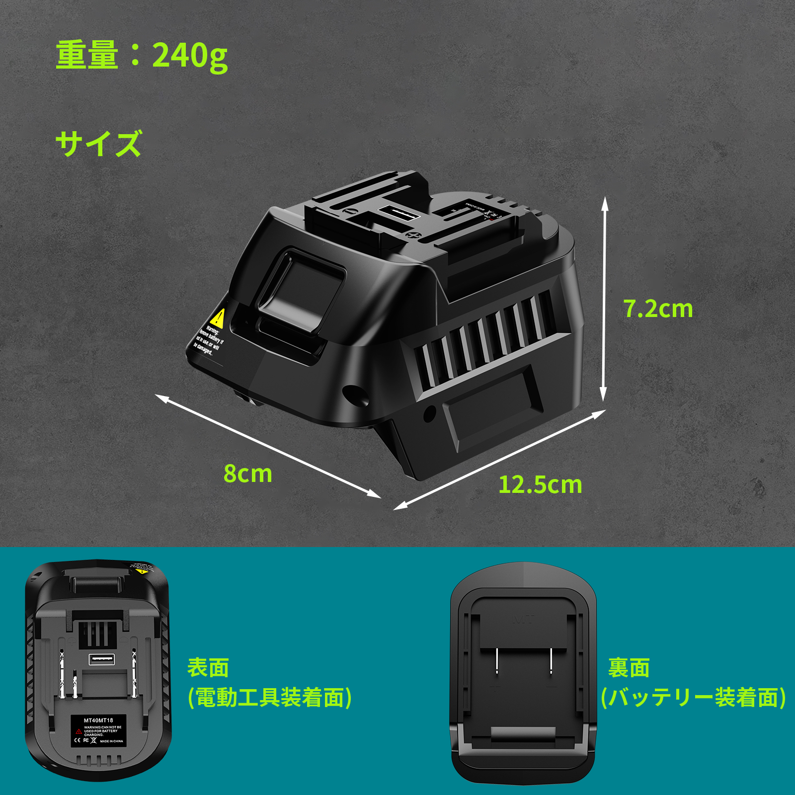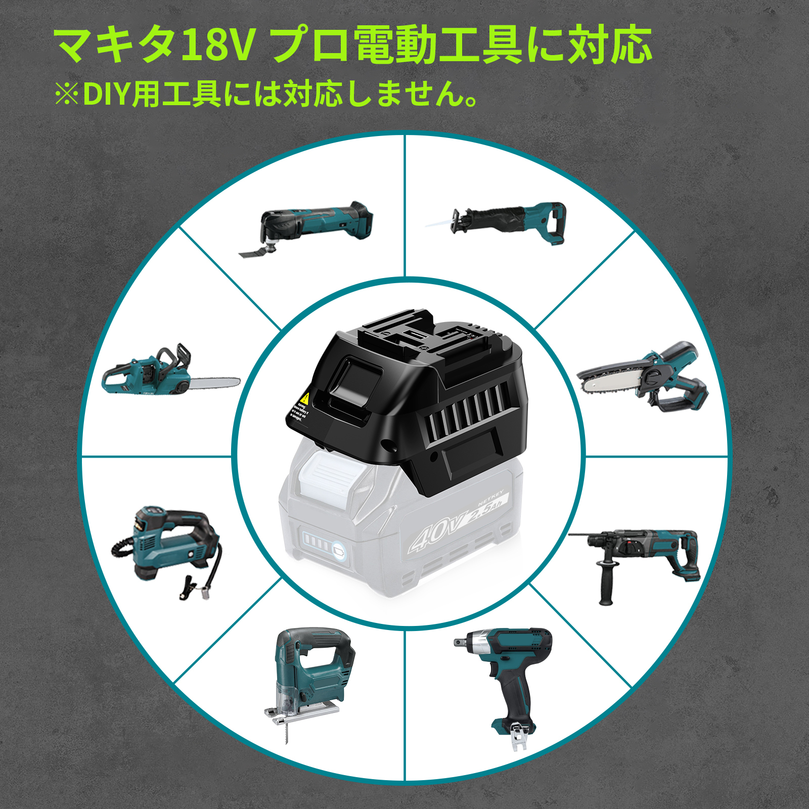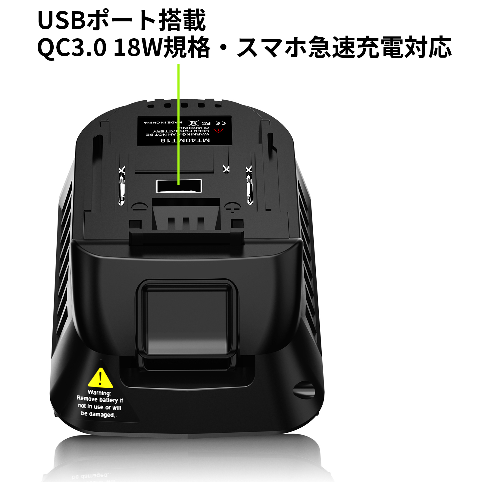 マキタ 40Vmax バッテリー変換アダプター 40Vから18Vに変換 バッテリーアダプター QC3.0 USB搭載 スマホ急速充電