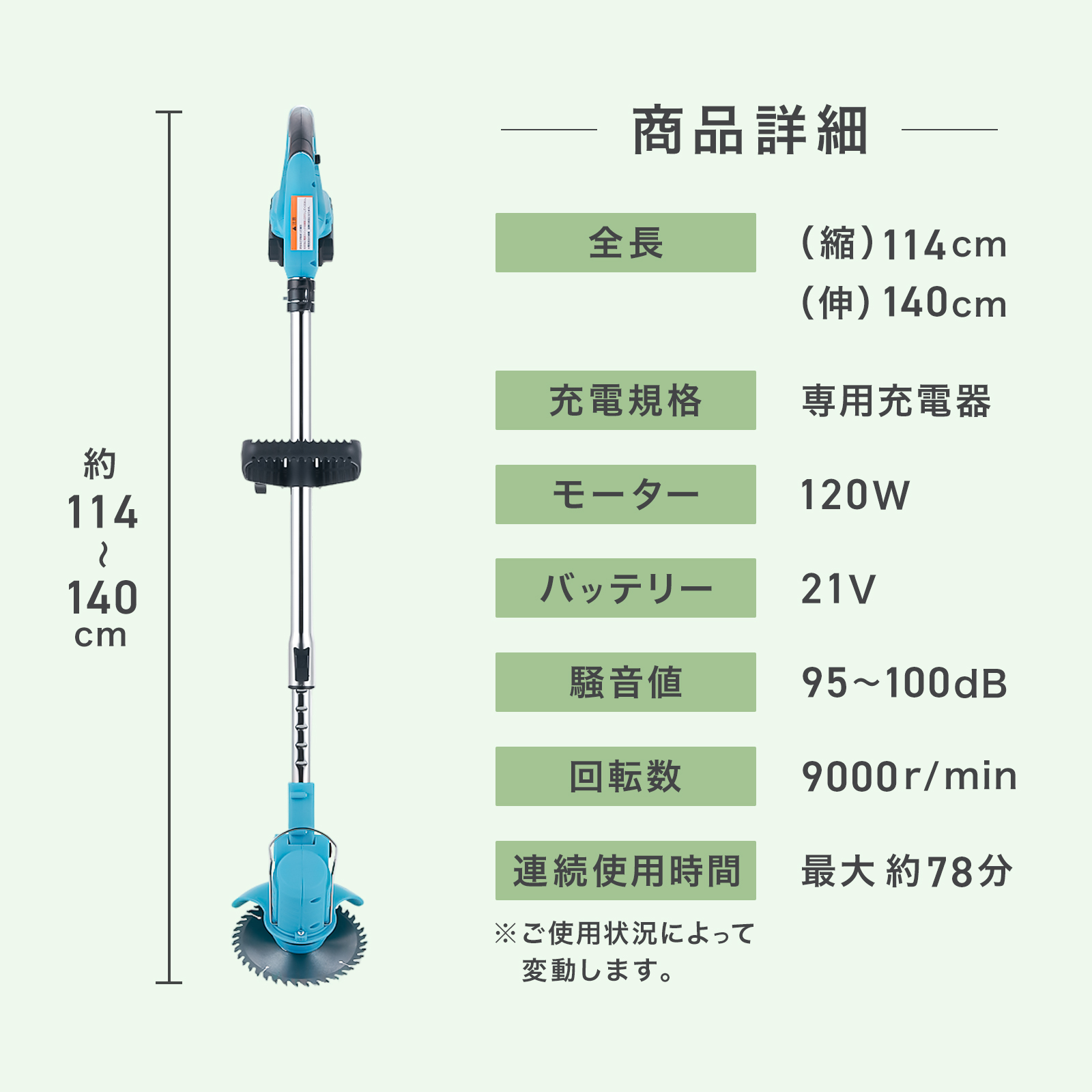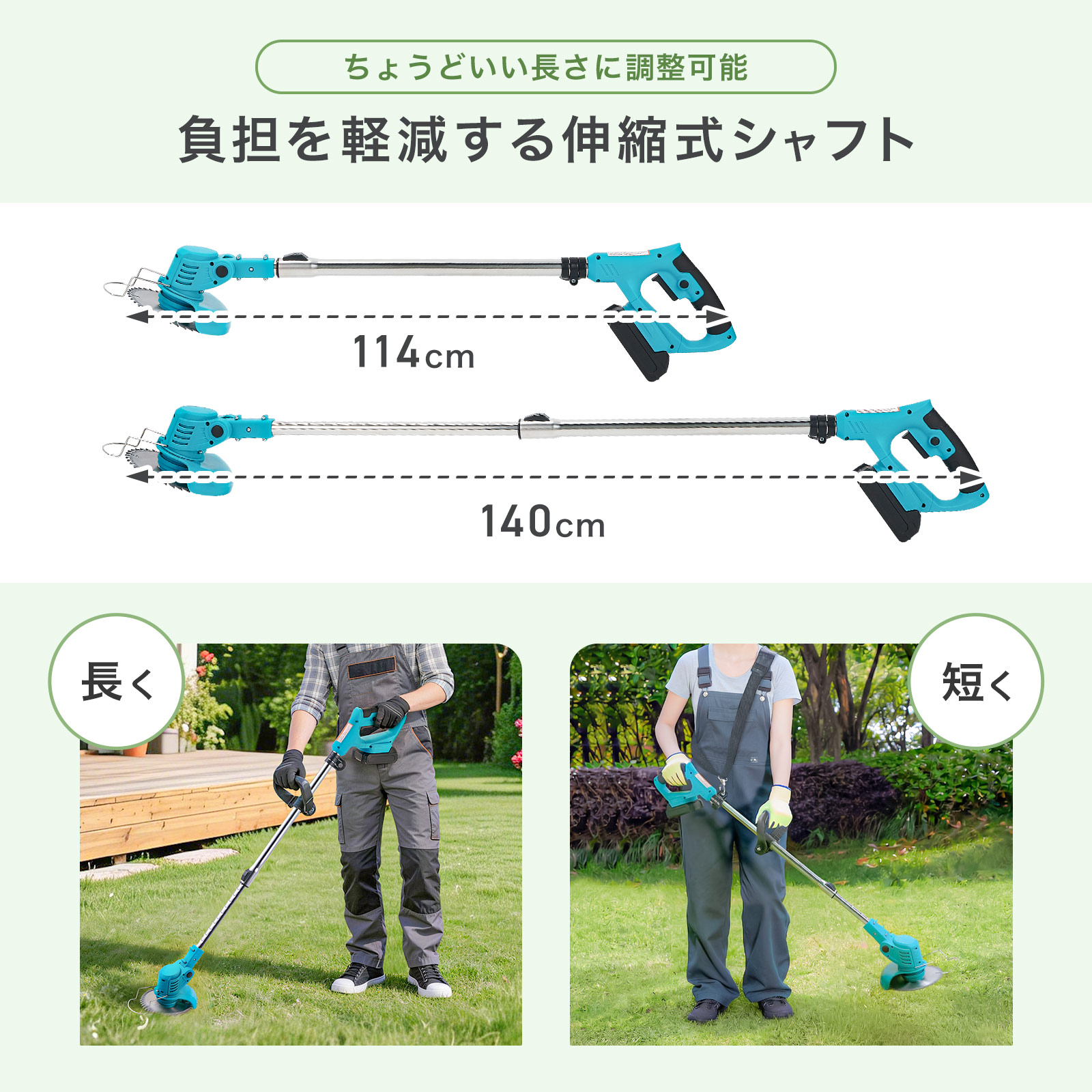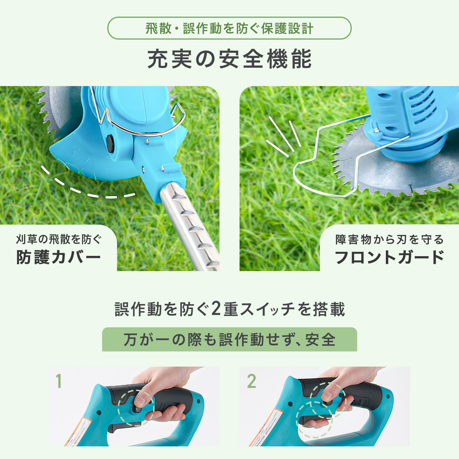 電動草刈機 草刈り機 刈払機 電動 充電式 21v コードレス ロング 替え刃 バッテリー タイヤ カバー ガード