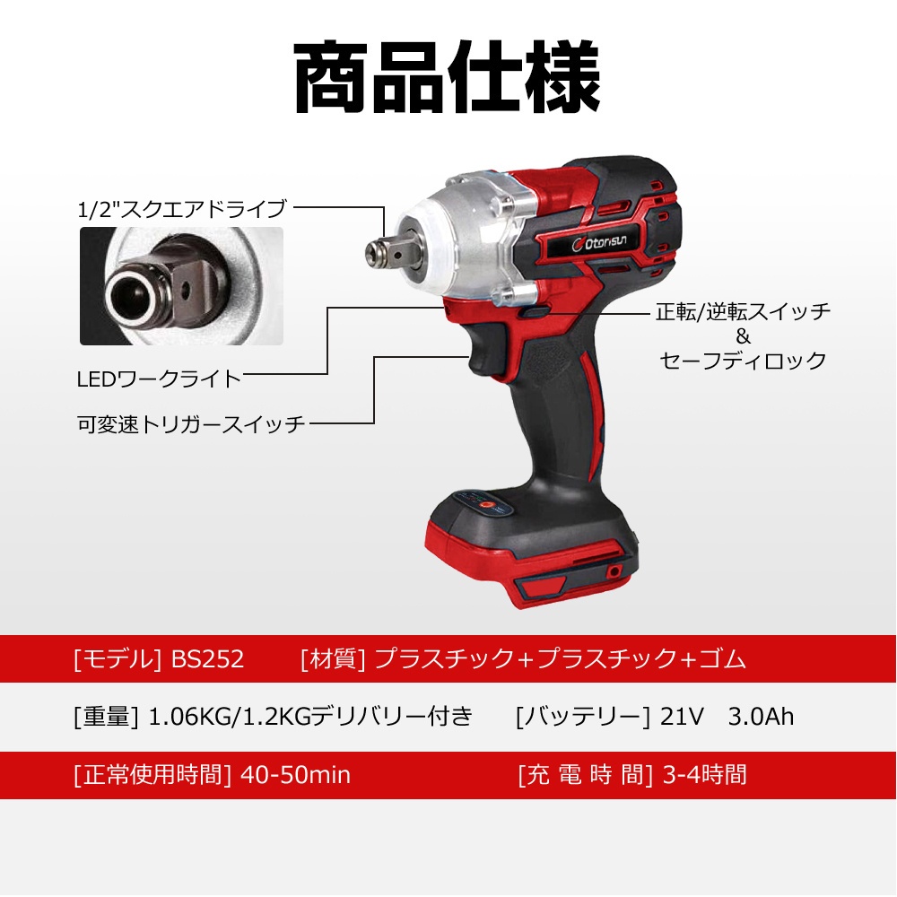 業界の新しいアップグレードは、片手で持っても疲れない軽量設計、長時間使用可能です。人間工学的な設計、グリップはスリムに設計され、握りやすい形状にされていて、滑りにくいです。初めてインパクトレンチを使った初心者、さらに女性でも気軽に操作できます。