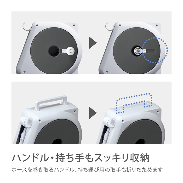 ホースをすべて収納できるので、日差しによるホースの劣化を防ぎます。