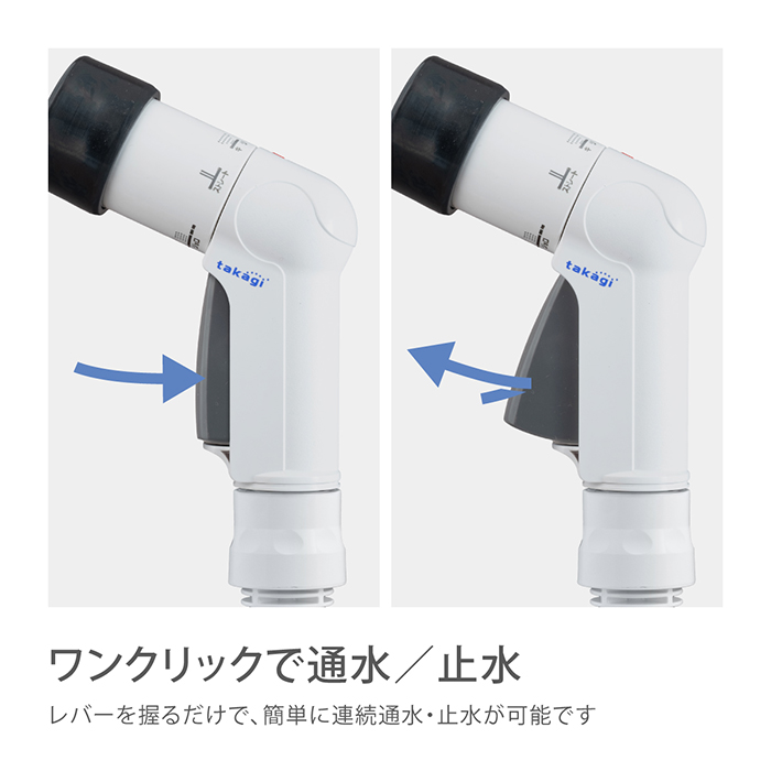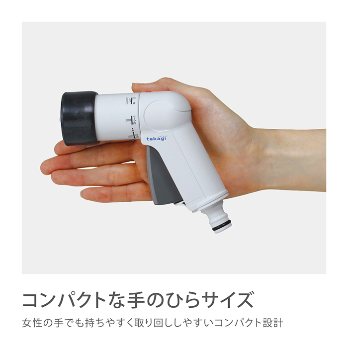 散水ノズルは軽くコンパクトな手のひらサイズでありながら、水形は4タイプに切り替えられます。