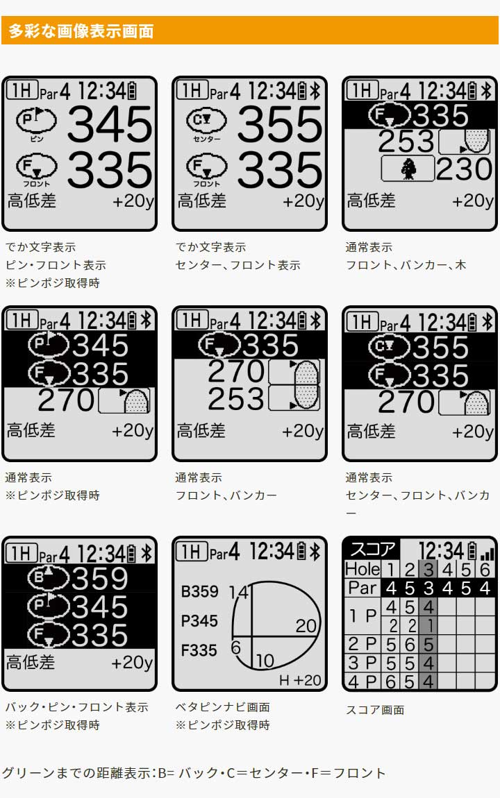これまでに好評だった“電源ONでナビ自動スタート”や“自動ホール検出&移行」機能などはそのままに新たにみちびきL1S信号対応となり受信精度&受信スピードがアップしました。 さらにBluetooth対応となりスマートフォン専用アプリ「EV PRO」とも連携可能となり、ピンポジ君対応コースでは簡単に当日のピン位置をダウンロードできるように。また、ピンポジ情報をダウンロードすることで「ベタピンナビ機能」も利用可能に。バッテリーも前モデルより使用時間が6時間アップするなど進化しています。