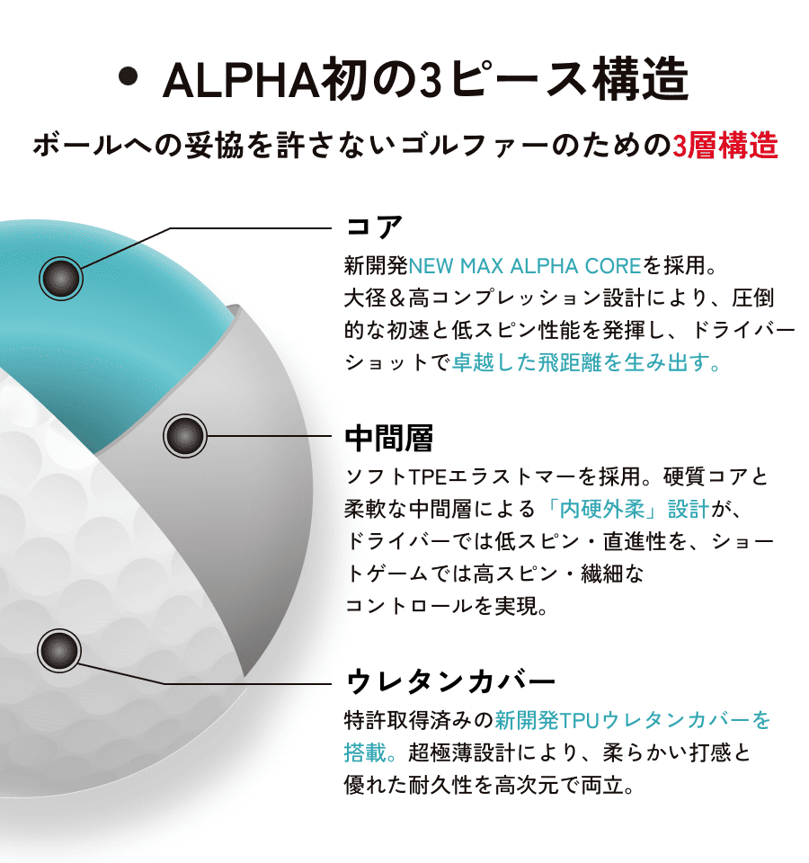ALPHA(アルファ) ゴルフボール 1ダース (12個入) = ACSEND1(アセンドワン) = 姜秀一3ピース ウレタン スピン系 飛び系 飛距離 ディスタンス ホワイトRS300 - ショッピング・ショップ | 通販検索