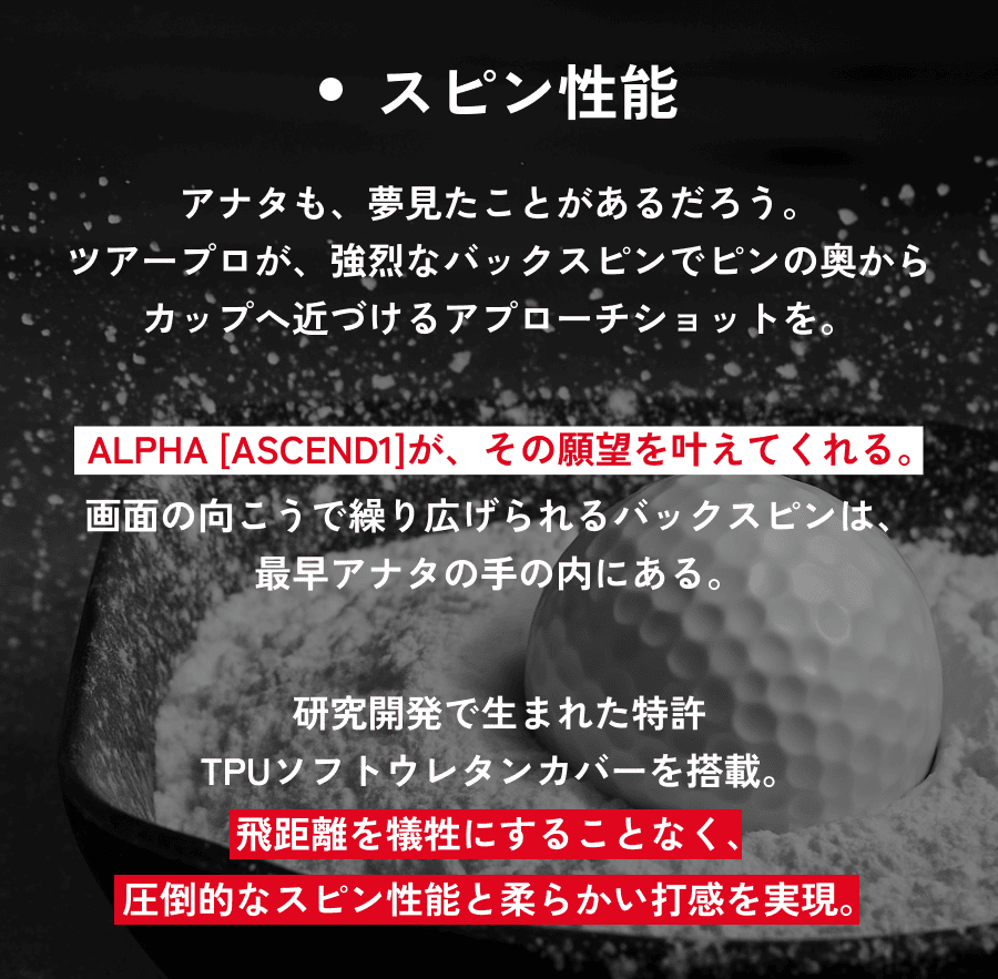 ALPHA(アルファ) ゴルフボール 1ダース (12個入) = ACSEND1(アセンドワン) = 姜秀一3ピース ウレタン スピン系 飛び系 飛距離 ディスタンス ホワイトRS300