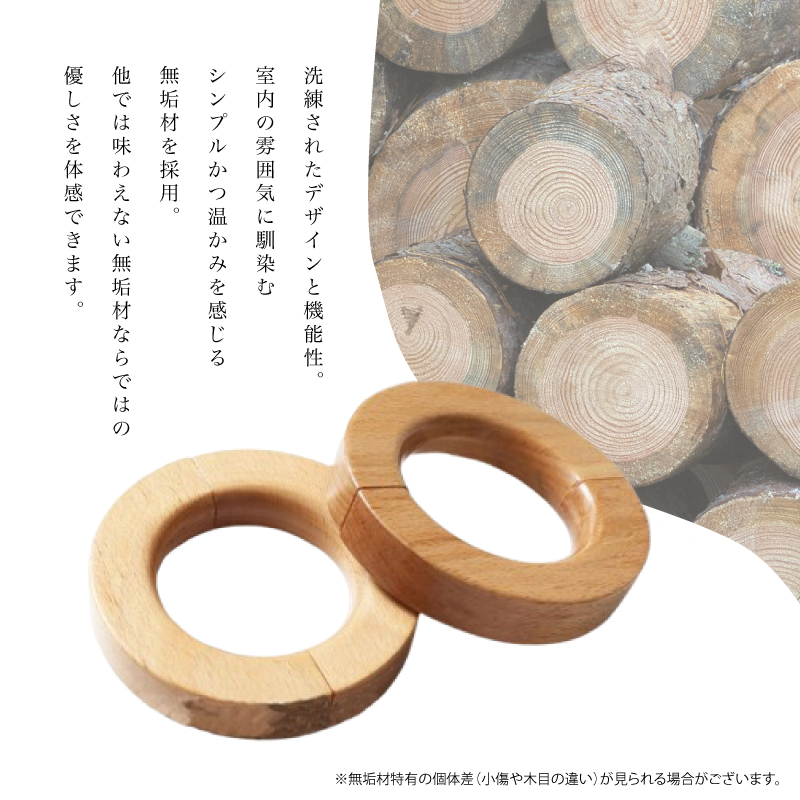 天然ブナ材を使用した、シンプルかつおしゃれなマグネット式カーテンタッセルです。リングを軽くスライドさせるだけで開閉でき、カーテンを簡単に束ねて固定可能。房掛けが不要で、どんなインテリアにも馴染む洗練されたデザインが魅力です。