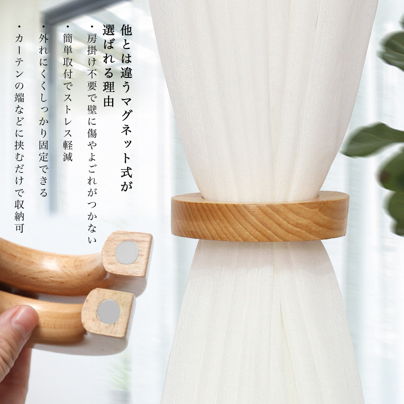 カーテンホルダー カーテンタッセル 木製カーテンリング マグネット式 ウッド ブナ材 ナチュラル 2個セット シンプル おしゃれ 天然木 ギフト 新生活 引越し祝い 送料無料 便利 トレンド ペア インテリア ランキング 受賞 プレゼント お買い物マラソン