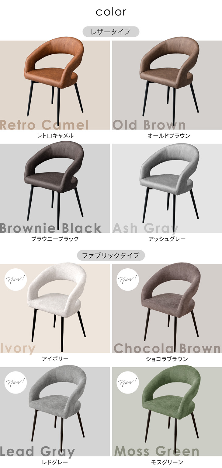 レトロキャメル、オールドブラウン、ブラウニーブラック、アッシュグレー