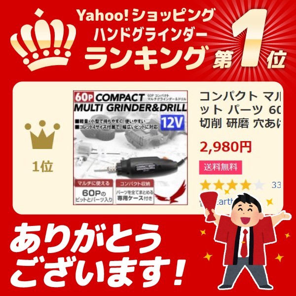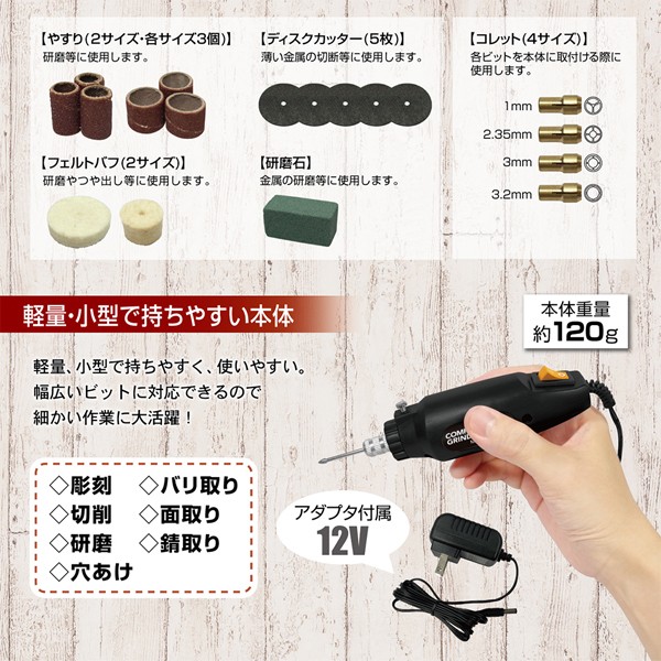 コンパクト マルチグラインダー&ドリル ビット パーツ 60ピース ケース付 12V 彫刻 切削 研磨 穴あけ DIY 1位
