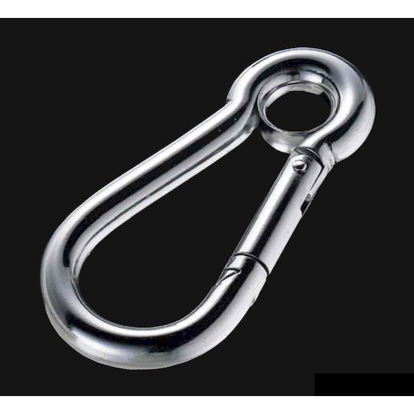●特徴:チェーンの端末金具などに、ワンタッチで付け外しが可能な、一番ポピュラーなフックです。ステンレス製でサビに強いカラビナフックです。