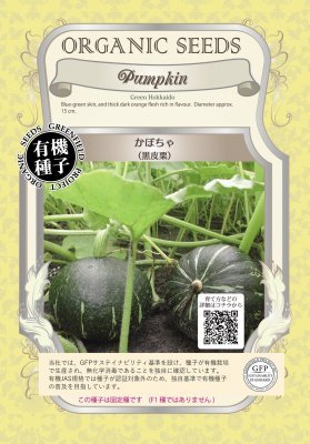 外皮は黒緑、果肉はオレンジ色のかぼちゃです。直径15センチほどで収穫します。
