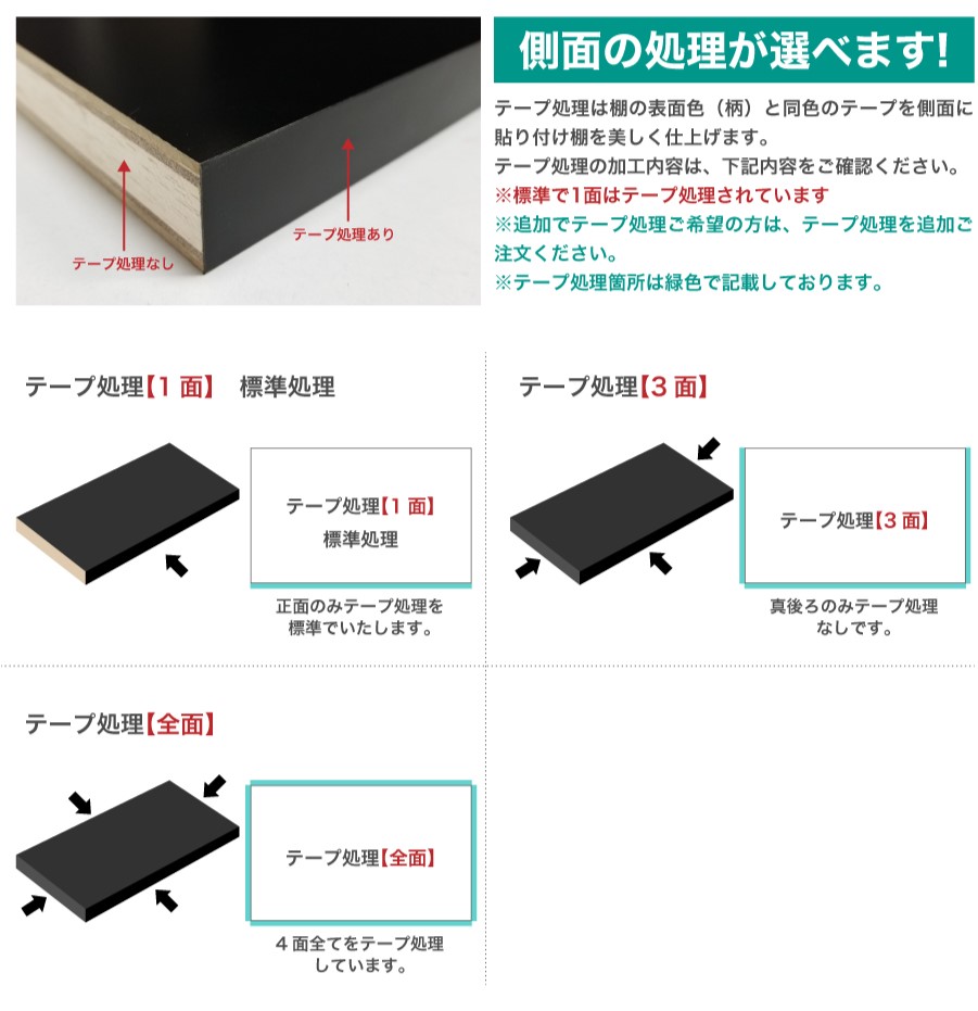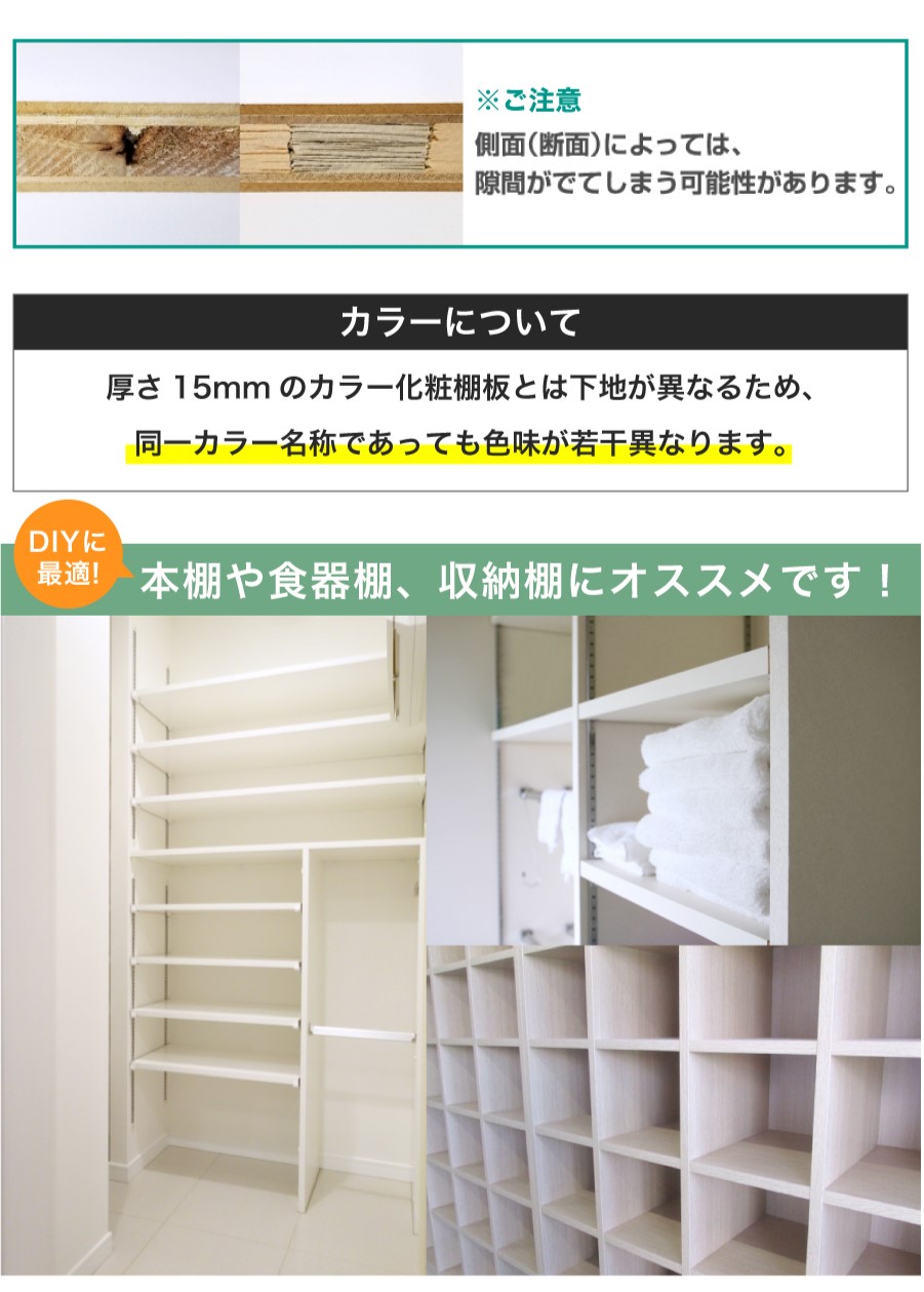 1mm単位で 長さ 奥行 オーダー可能 カラー化粧棚板