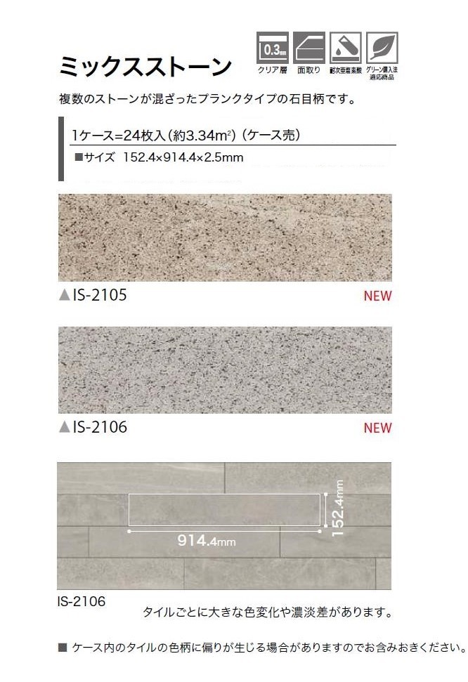 【ケース売】ストーン床材 石目 ミックススートン 152.4×914.4×2.5mm IS2105 IS2106 サンゲツ フロアタイル STONE 「SANGETSU FLOORTILE 2023-2026」