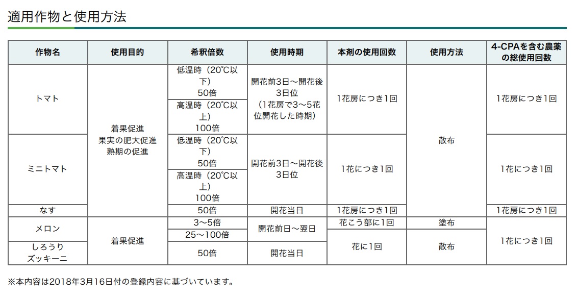農薬の種類 4−CPA液剤