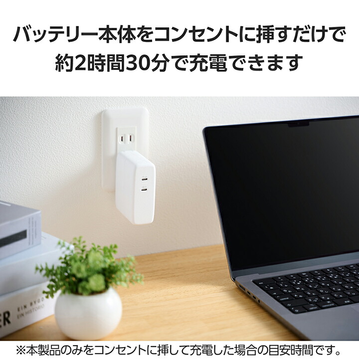 ■コンセントに挿すだけで本製品を直接充電可能。本製品は約2時間30分で充電できます。