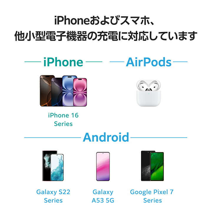 ■iPhoneをはじめとしたスマートフォンはもちろん、iPadなどのタブレット、MacBook Airなどのノートパソコン、NINTENDO SWITCH(TM)、NINTENDO SWITCH Lite(TM)などのゲームも充電可能です。