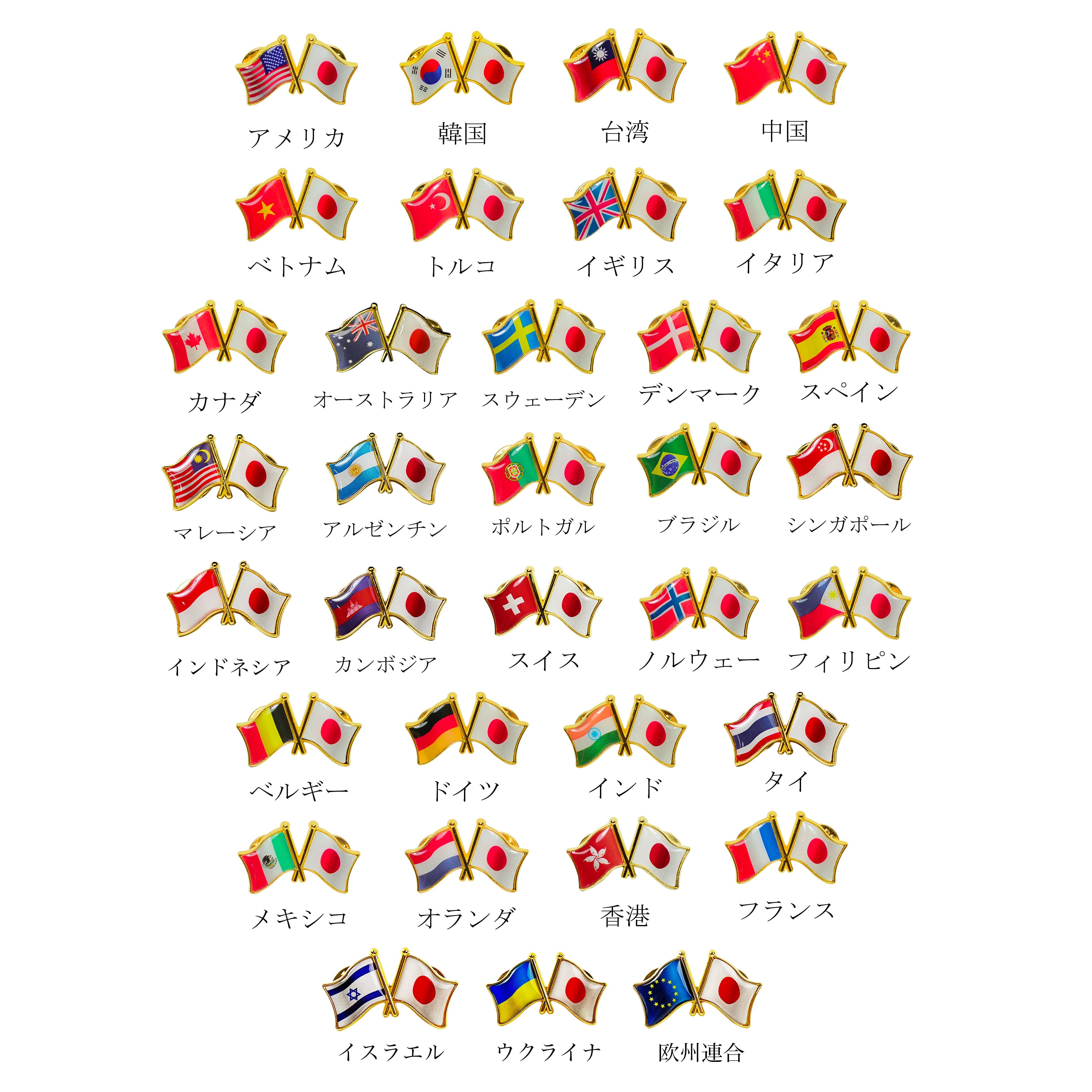 国旗ピンバッジ 日本と41カ国組み合わせ 友好バッジ ダブル国旗