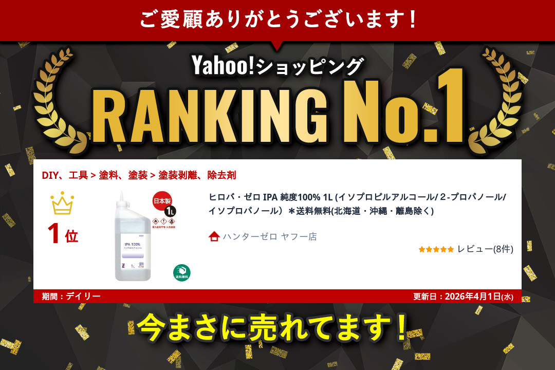 ヒロバ・ゼロ IPA 純度100% 1L (イソプロピルアルコール/2−プロパノール/イソプロパノール)*送料無料(北海道・沖縄・離島除く)