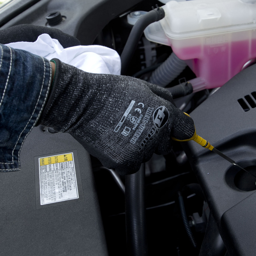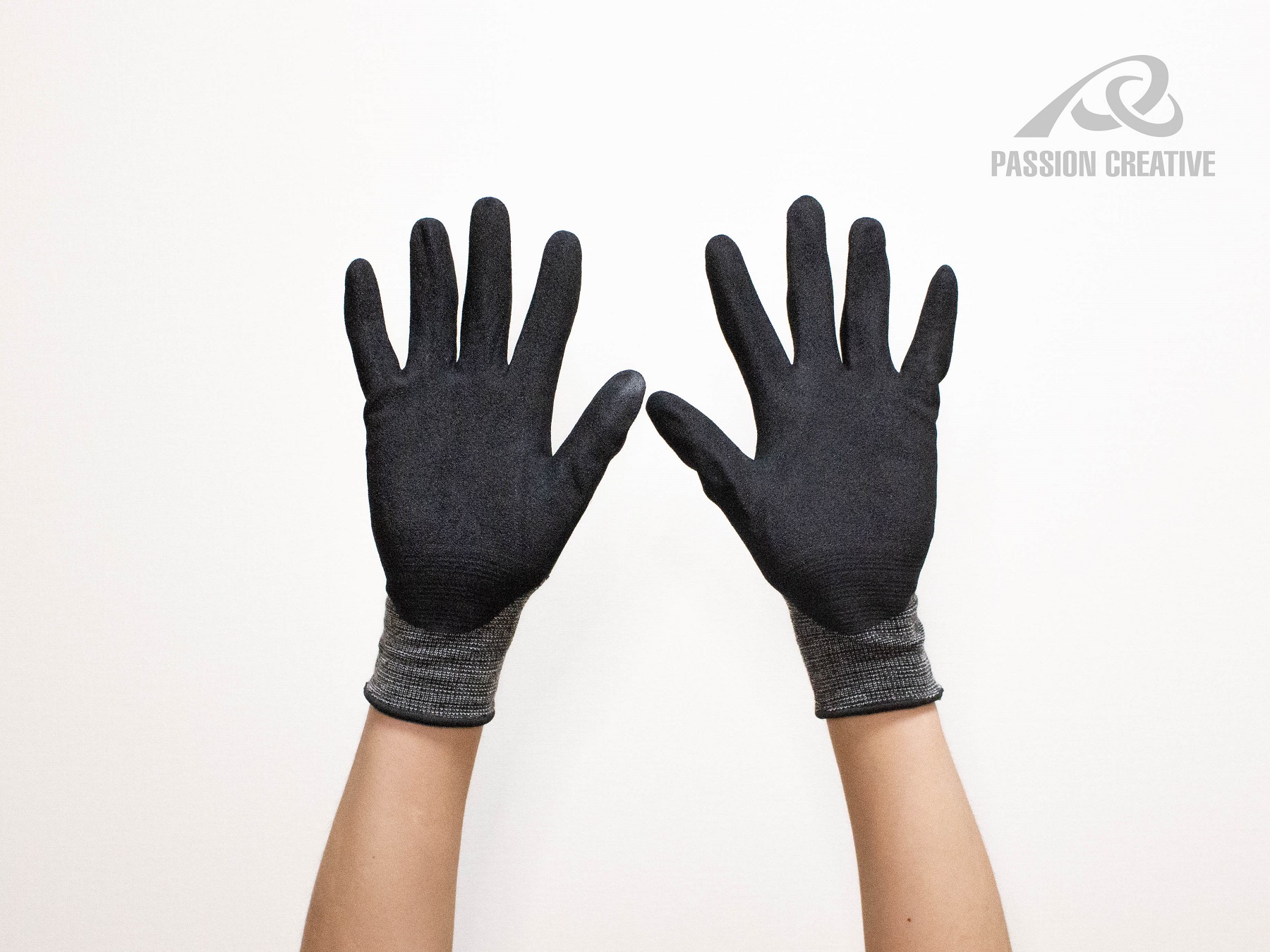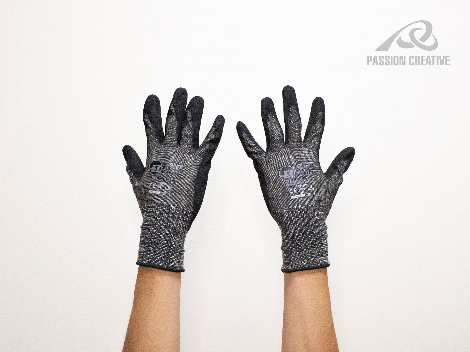 手のひらに独自製法の加工を施し、濡れた状態でも滑りにくく作業をサポートします。