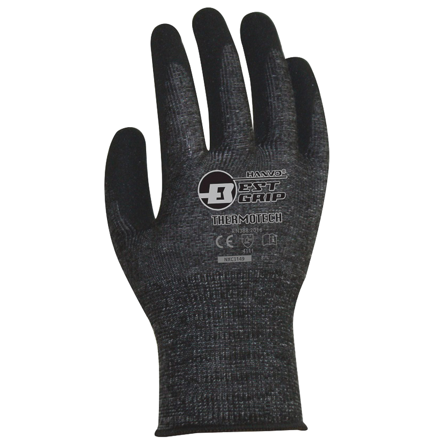 (防寒手袋, 防寒, 手袋, 吸湿発熱, 発熱素材, サーモテック, ドライ, ムレにくい, 吸汗速乾, 速乾, 消臭, ニトリルゴム, ニトリル, グリップ, すべり止め, 濡れても滑りにくい, ファインフィニッシュ, タッチパネル対応, スマホ対応, 物流, 運送, 荷役, 仕分け, 冷蔵庫作業, 冷凍庫作業, サービス業, 日曜大工, 家庭作業, 作業用手袋, HANVO, ハンボ, BEST GRIP, NXC3149, ブラック, M, L, LL)