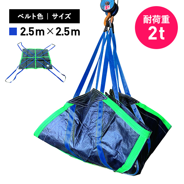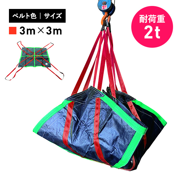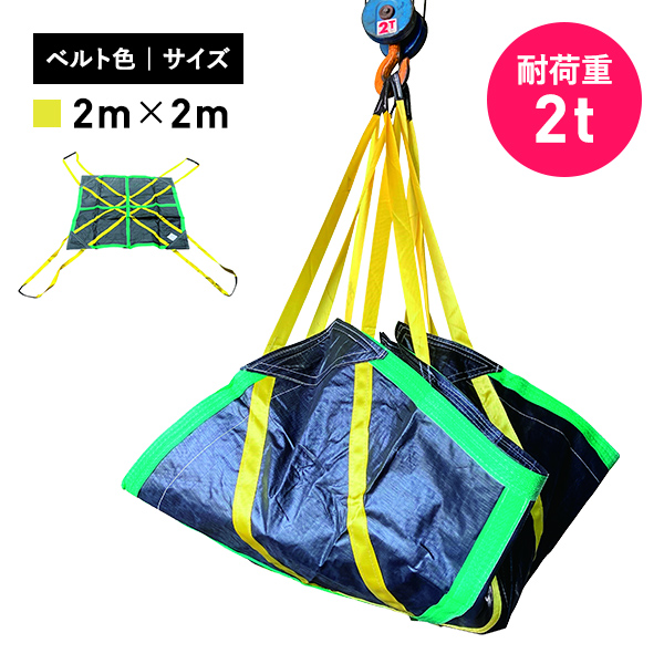 シートモッコ 2.0m×2.0m イージーモッコ 耐荷重 2t コンドーテック サイズ 200cm×200cm モッコ 荷揚げ クレーン用吊りモッコ 吊り具 運搬 吊り袋 布 建築
