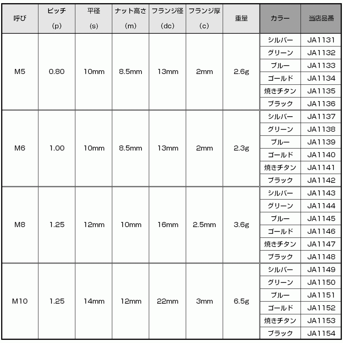 チタンナット M10 P1.25 六角ナット フランジ付き ゴールド デザイン JA1152