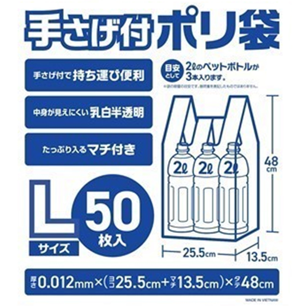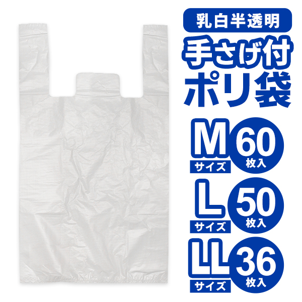 ポリ袋 持ち手付き 無地 半透明 乳白 M L LL 手提げ マチ付 買い物袋 ゴミ袋 ごみ袋 レジ袋 ビニール袋 ゴミ分別 手提げ袋 /60N◇ 手さげ付ポリ袋
